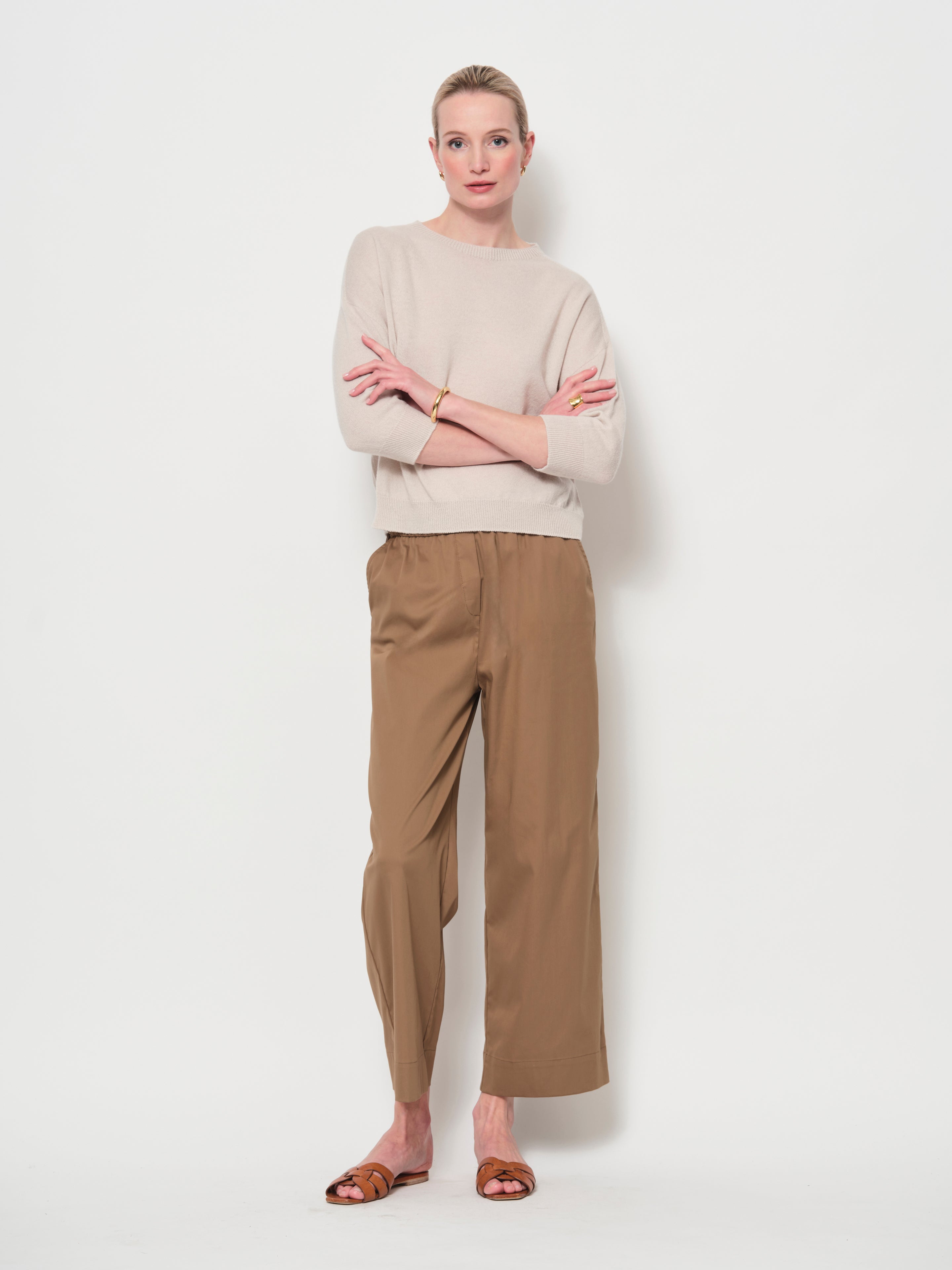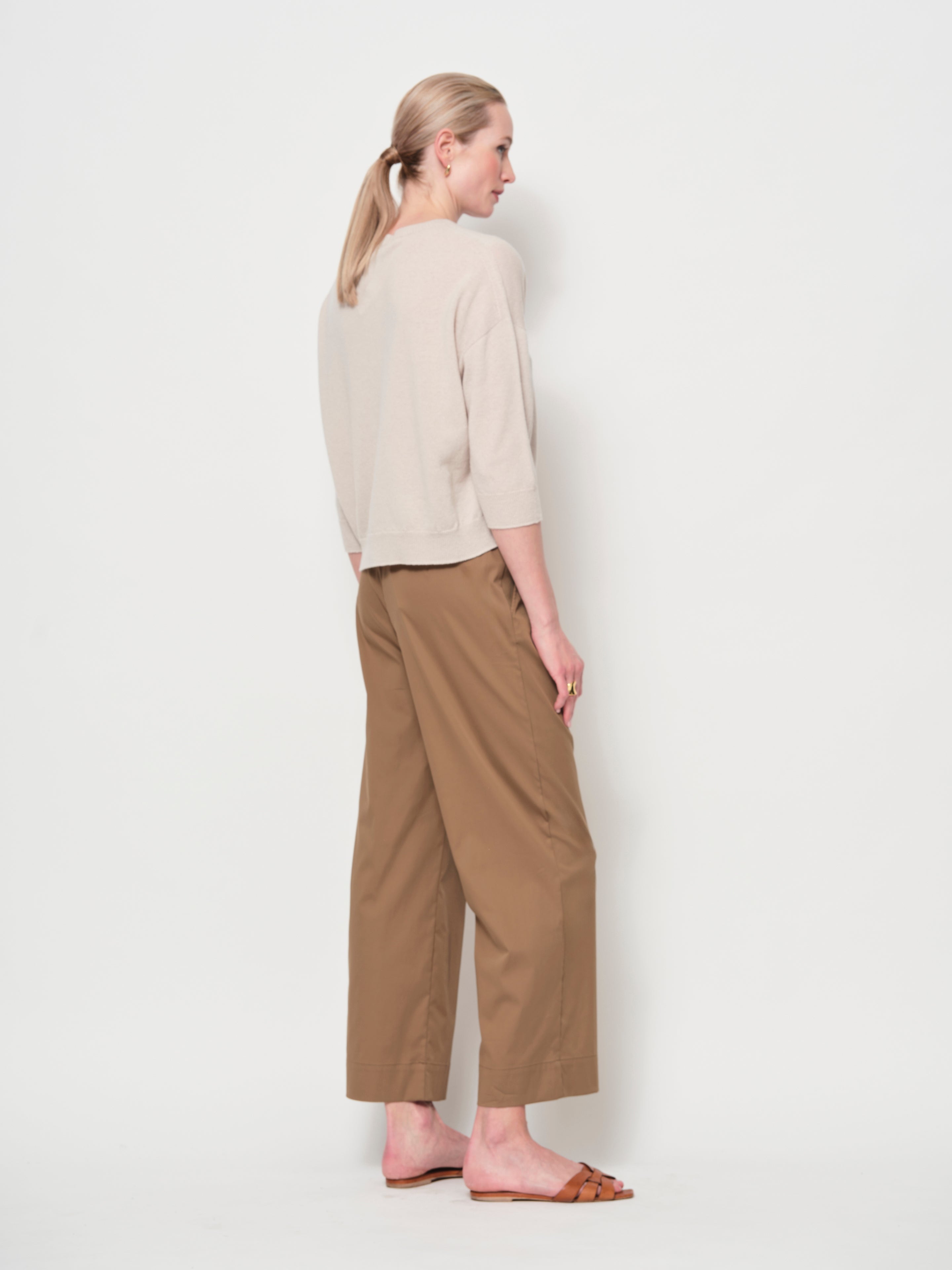The perfect summer trouser that will feel like a second skin. Made from a soft and luxurious cotton with a light sheen, the fabric has much stretch, which makes them super comfortable. For a slimmer fit, choose one size down.