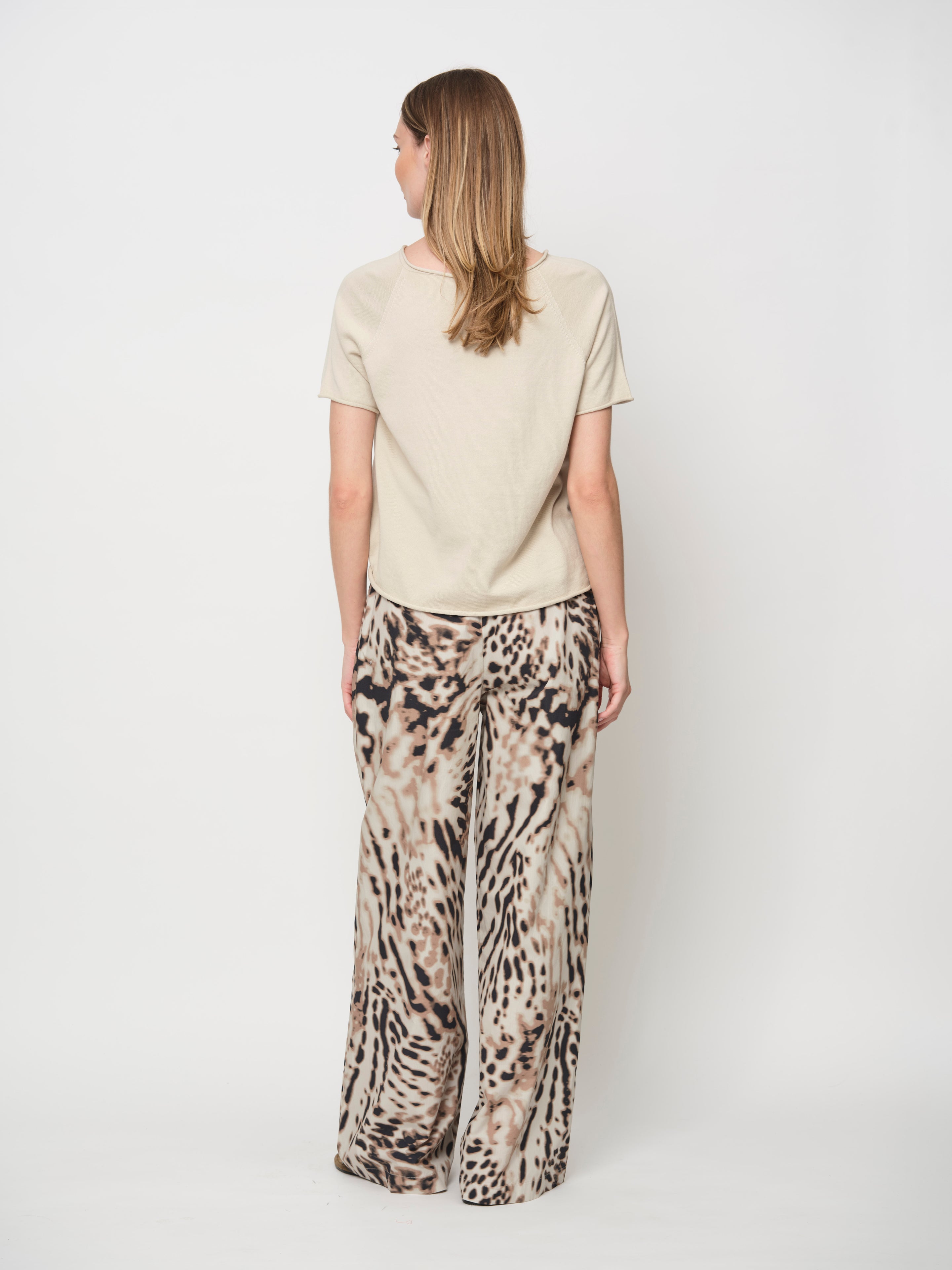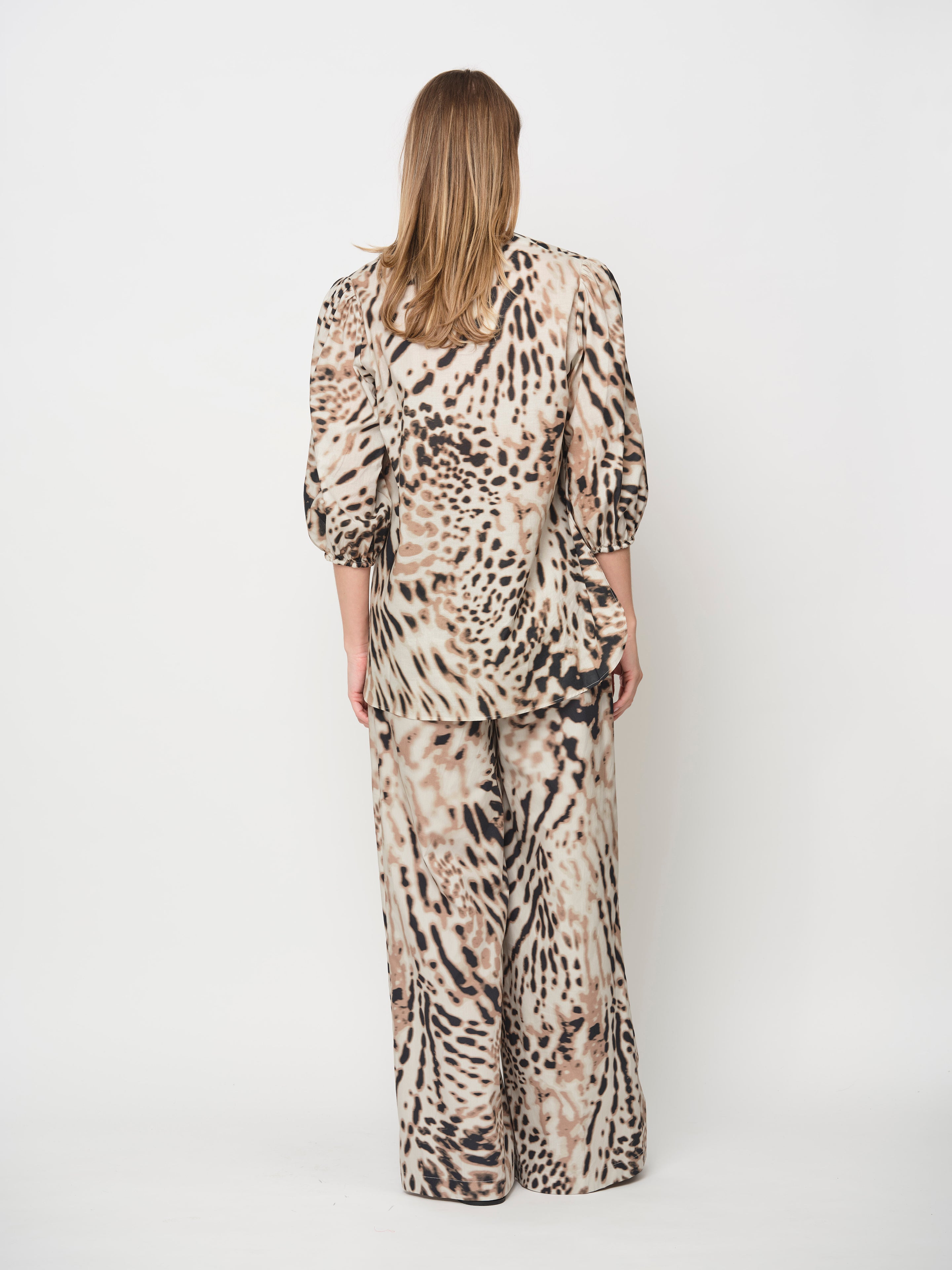 Leo-inspired printed trousers, crafted from soft, breathable cotton. Featuring a wide-leg silhouette with flowing pleats and a side zip. Pair with the matching printed blouse for a coordinated, statement look.