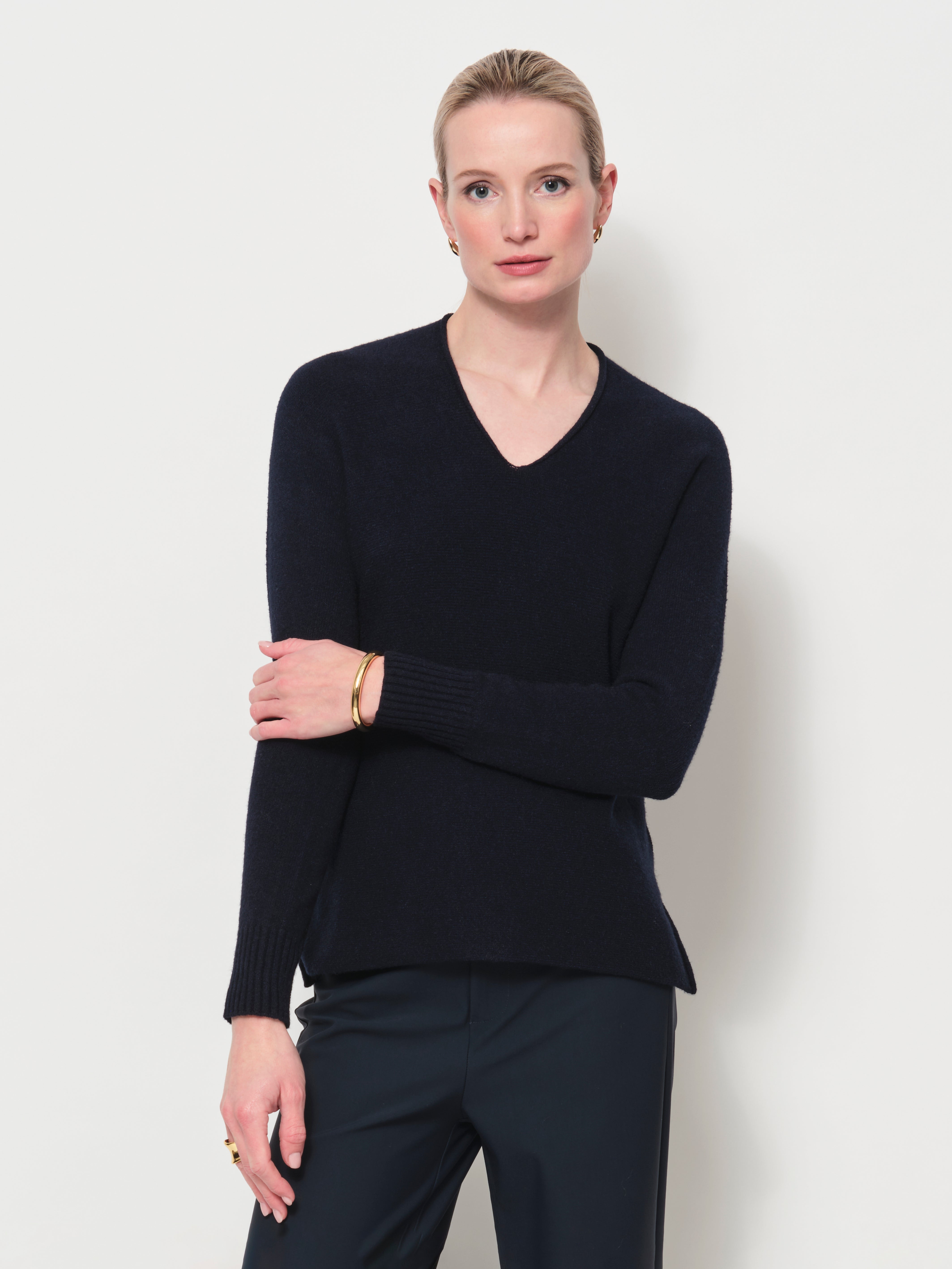 Elevate your spring-summer wardrobe with this effortlessly stylish V-neck sweater. Crafted from a soft, breathable knit blend, it offers cozy comfort with a lightweight feel. Its minimalist design makes it a versatile piece—easy to dress up or down for casual or refined looks.