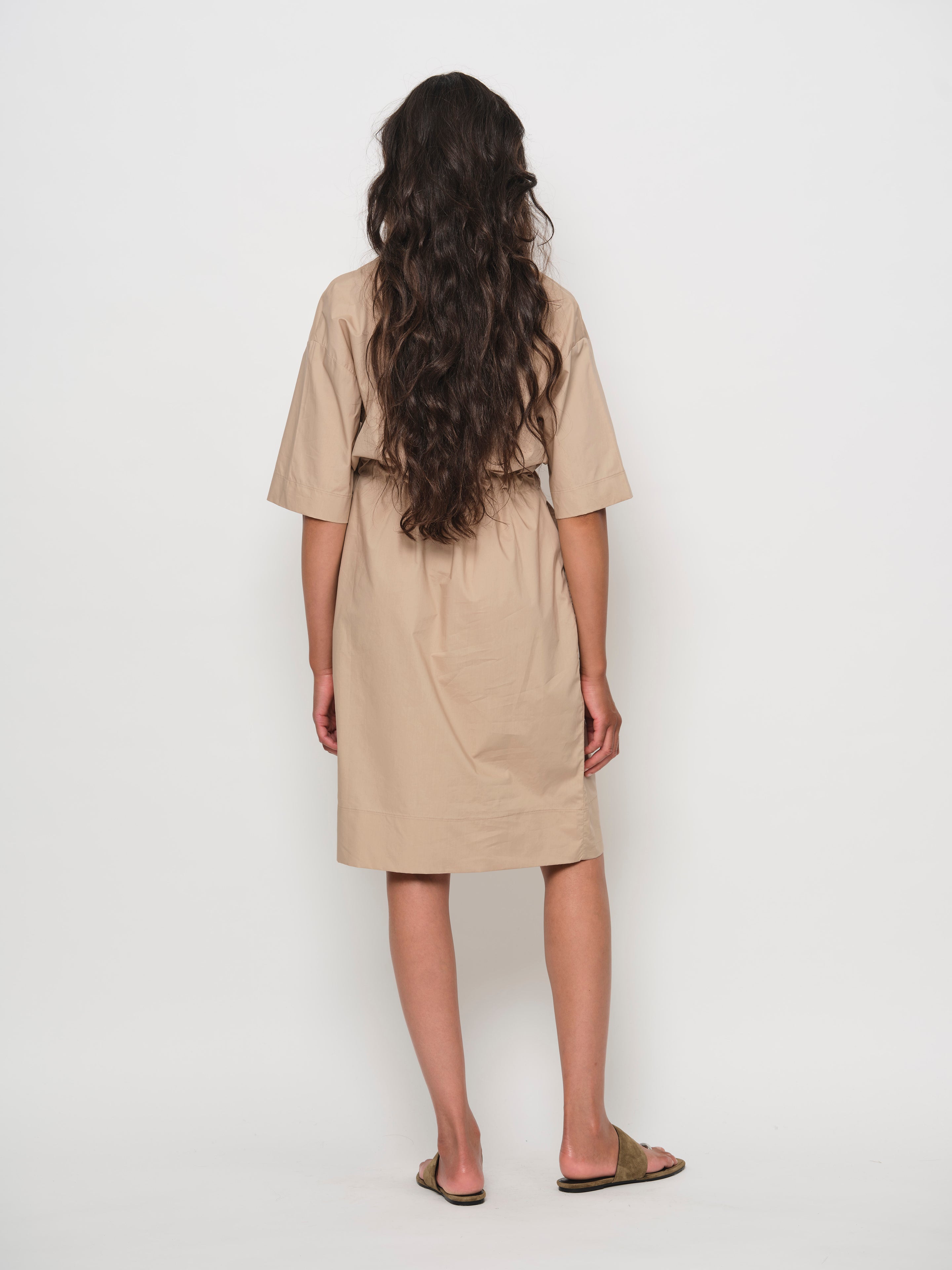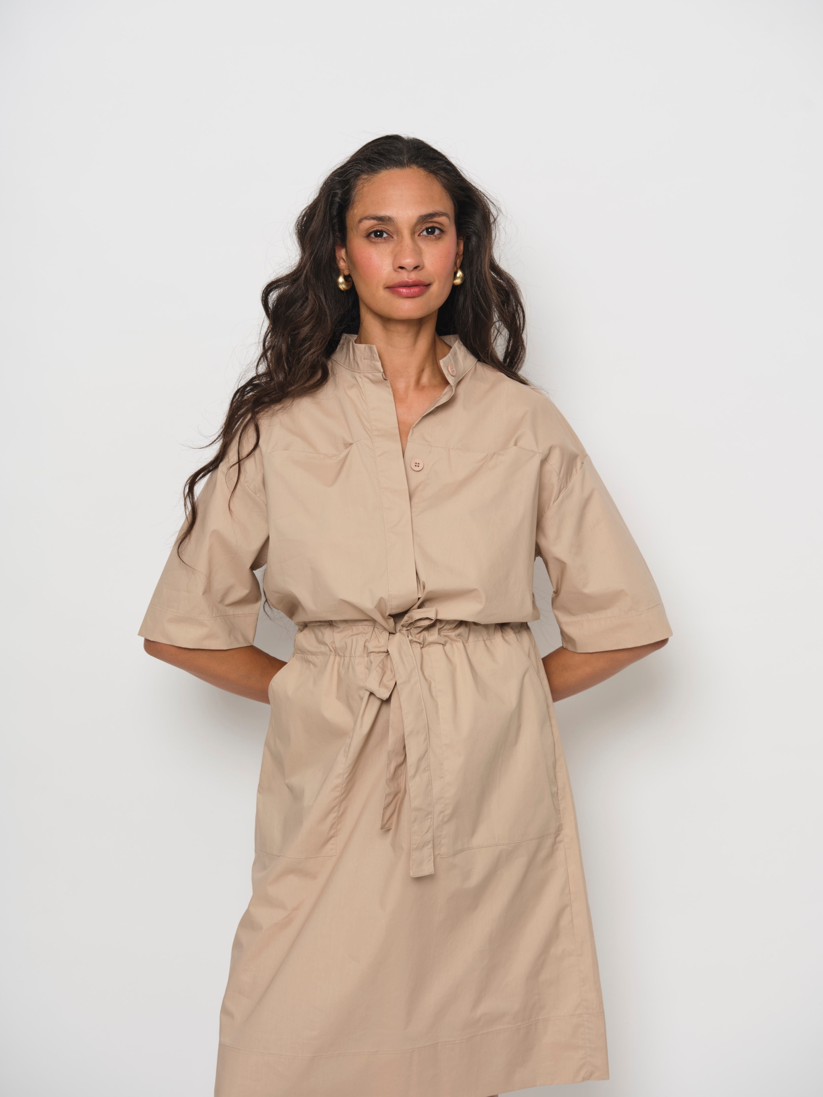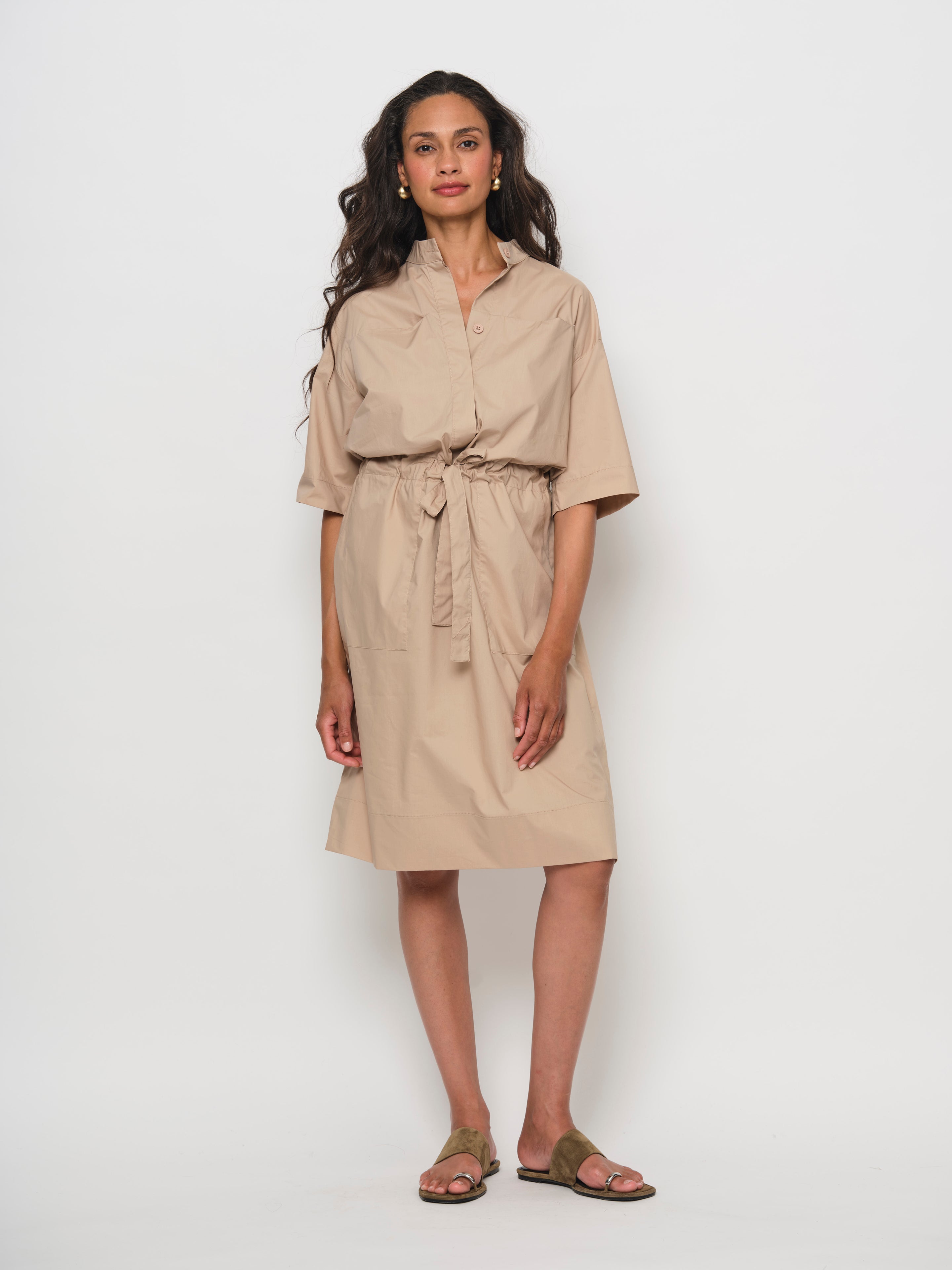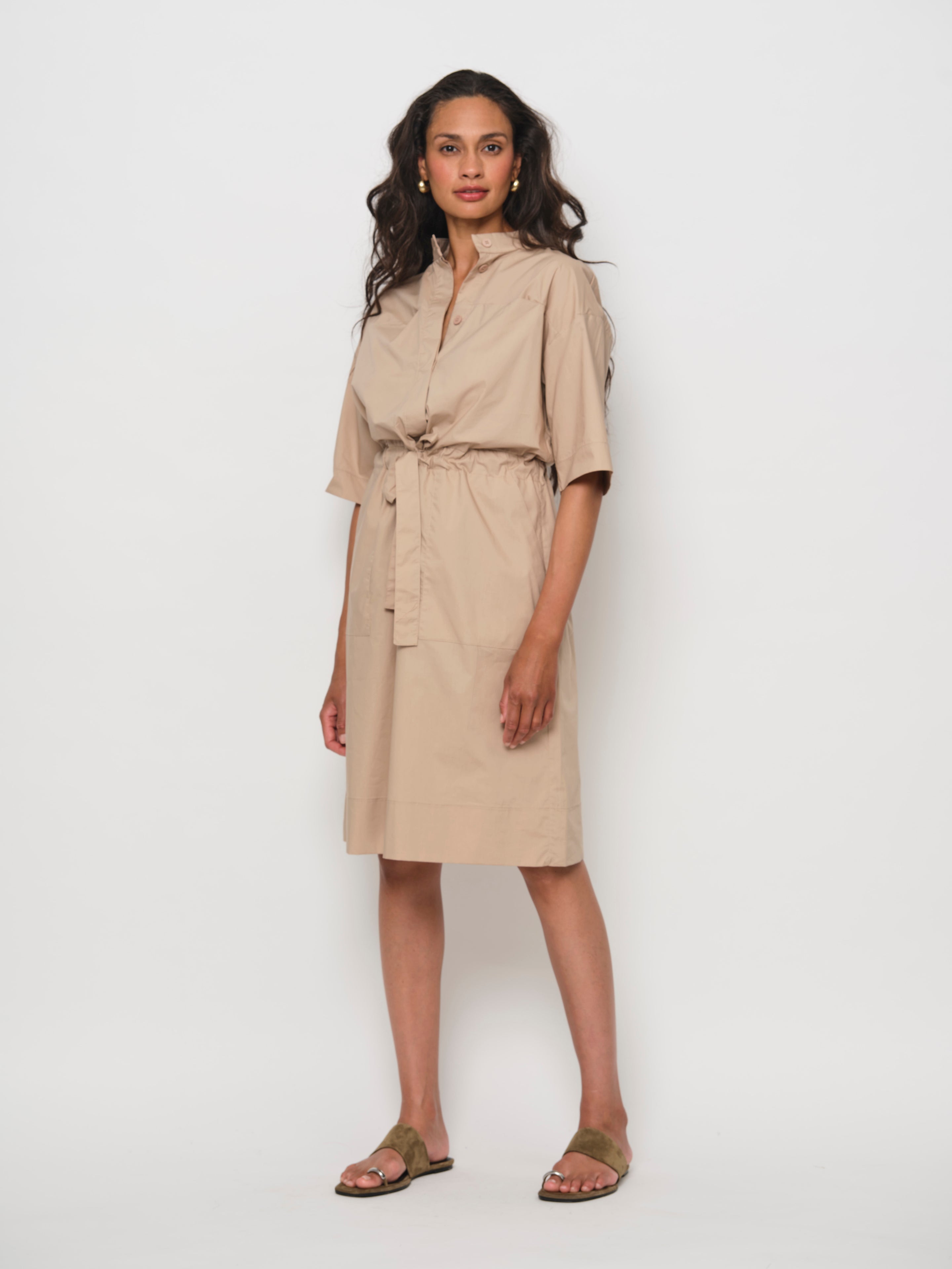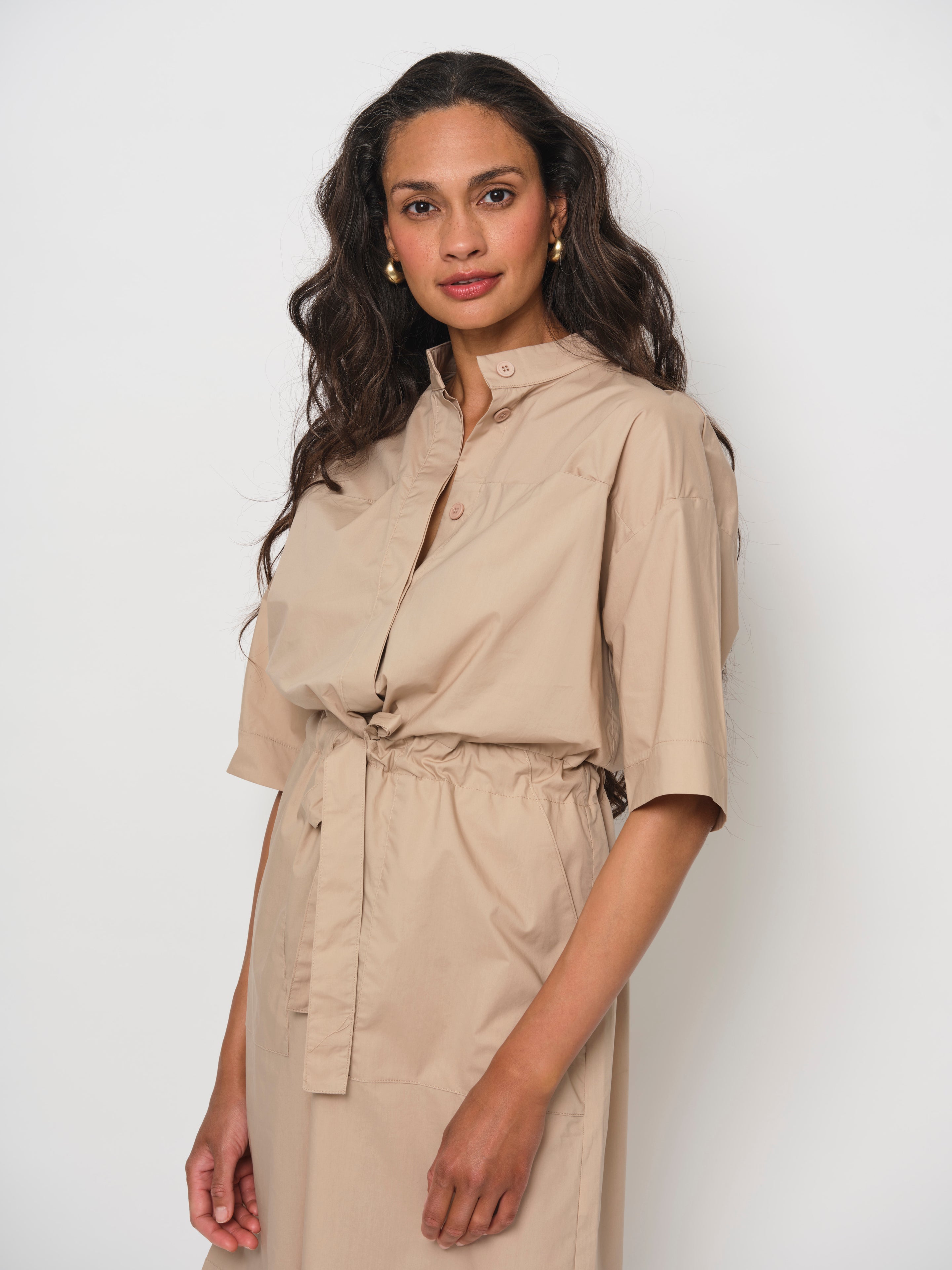 Crafted from soft, breathable cotton. The adjustable waist tie and open collar create a casual yet refined look.