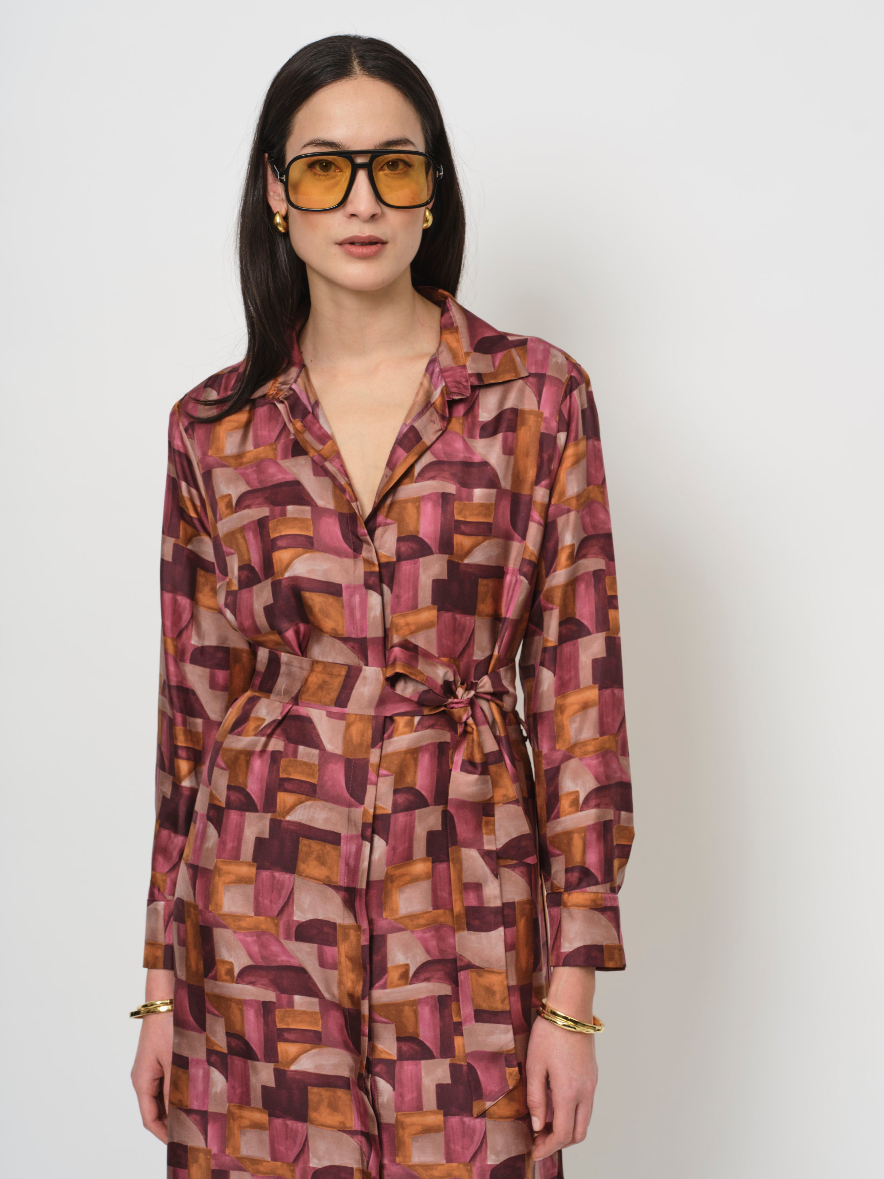A timeless shirt dress interpreted in a silk twill. The silk provides a soft, smooth touch that feels wonderful against the skin. Designed with a relaxed fit, this dress features a belt to accentuate the waist, can also be removed.