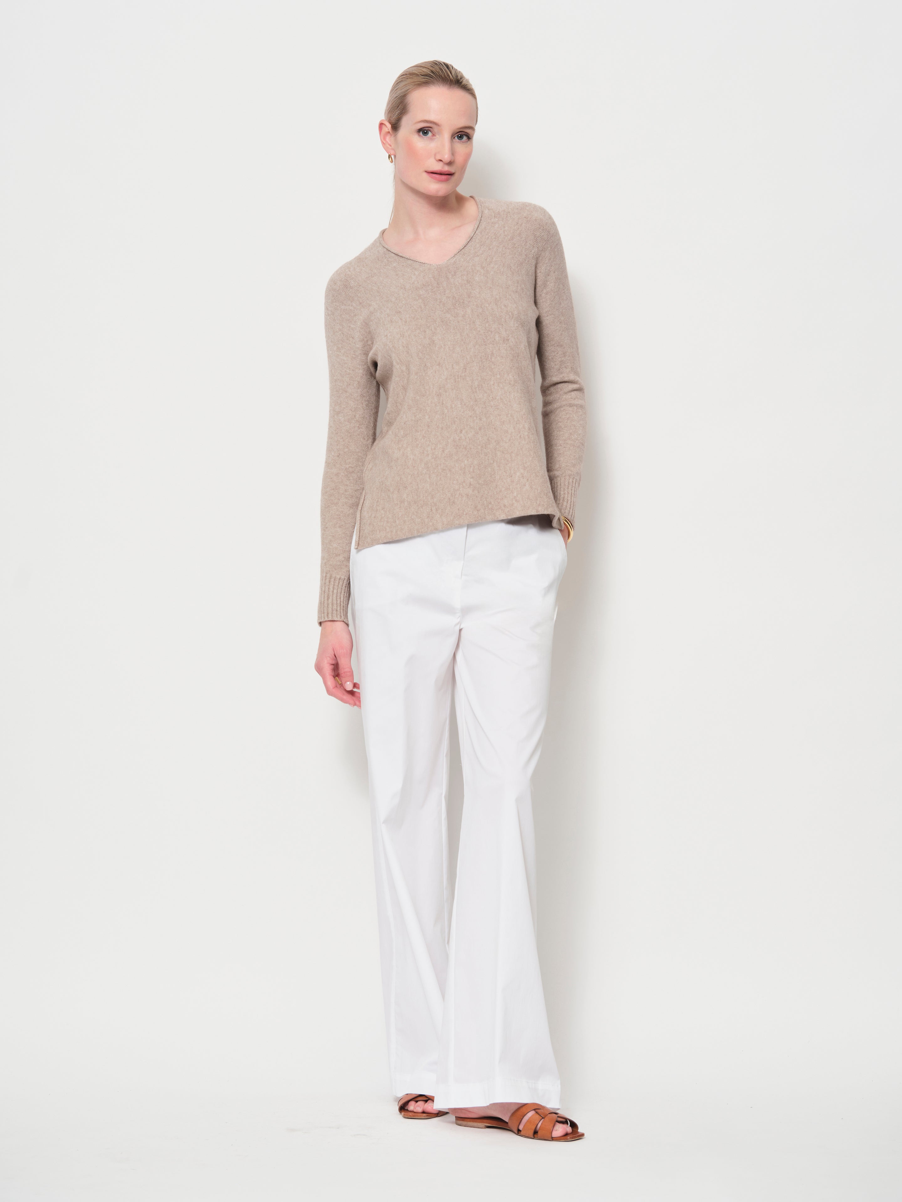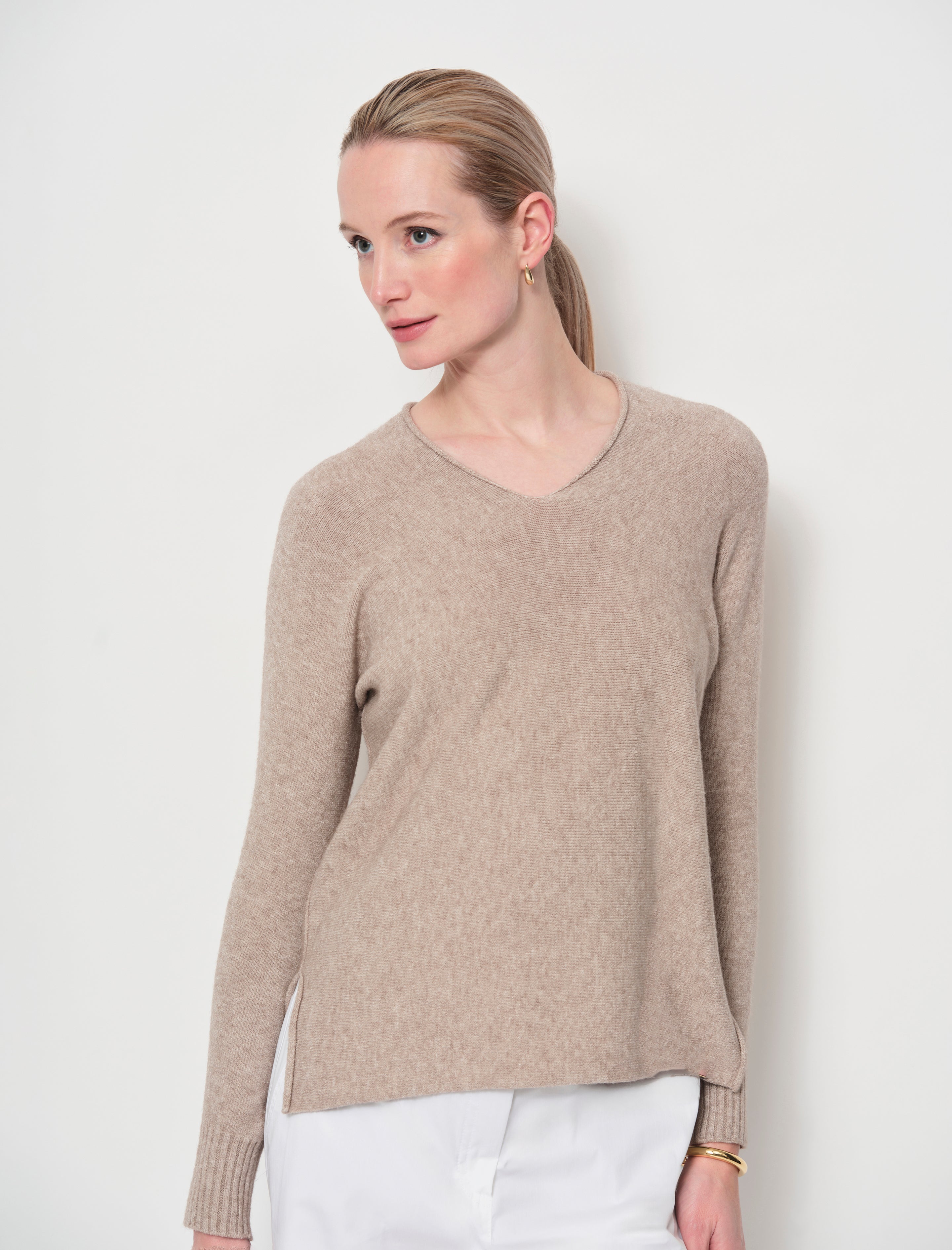 Elevate your spring-summer wardrobe with an knitted V-neck sweater. Crafted from a soft, breathable knit blend, it offers comfort with a lightweight feel.