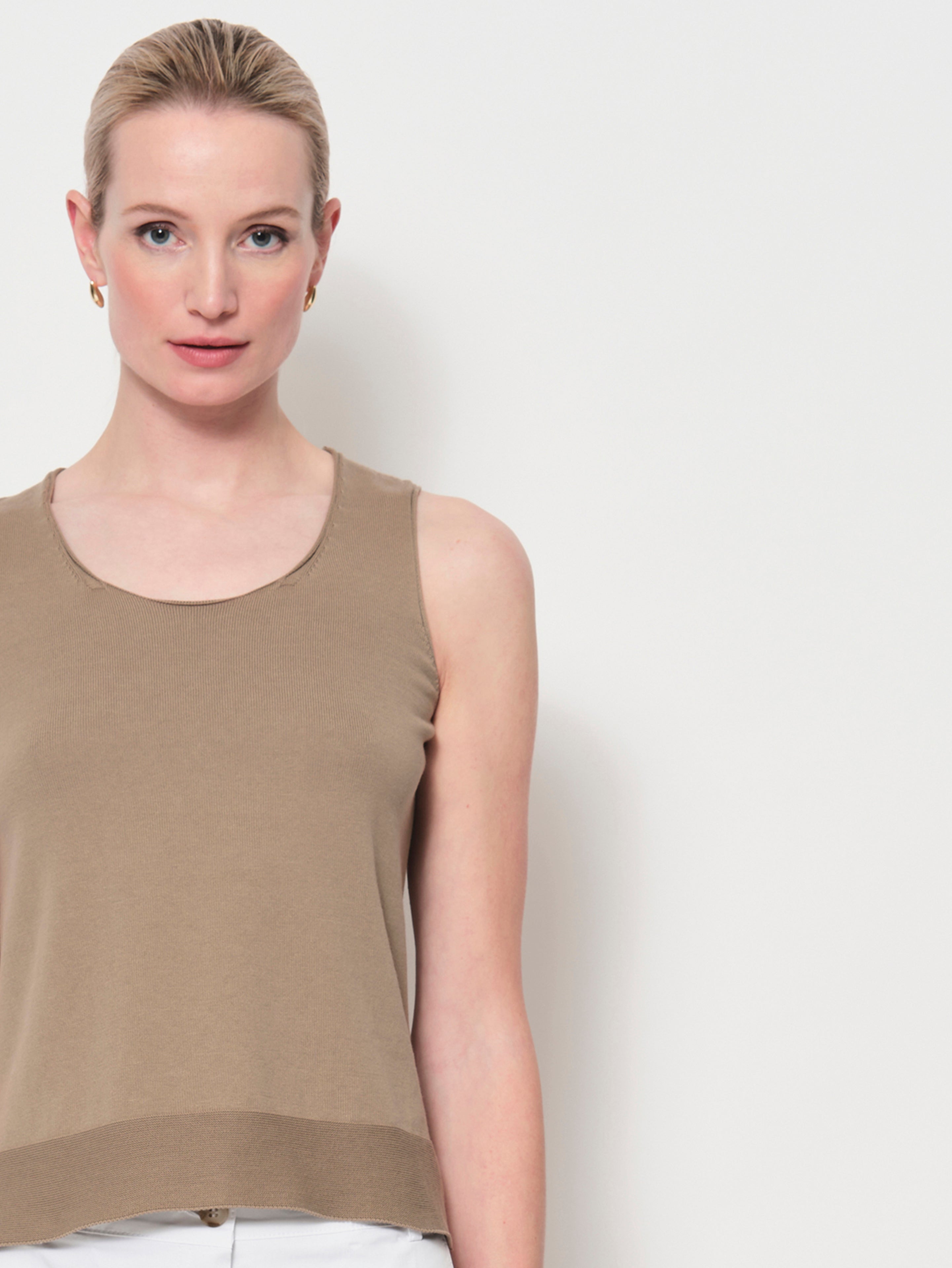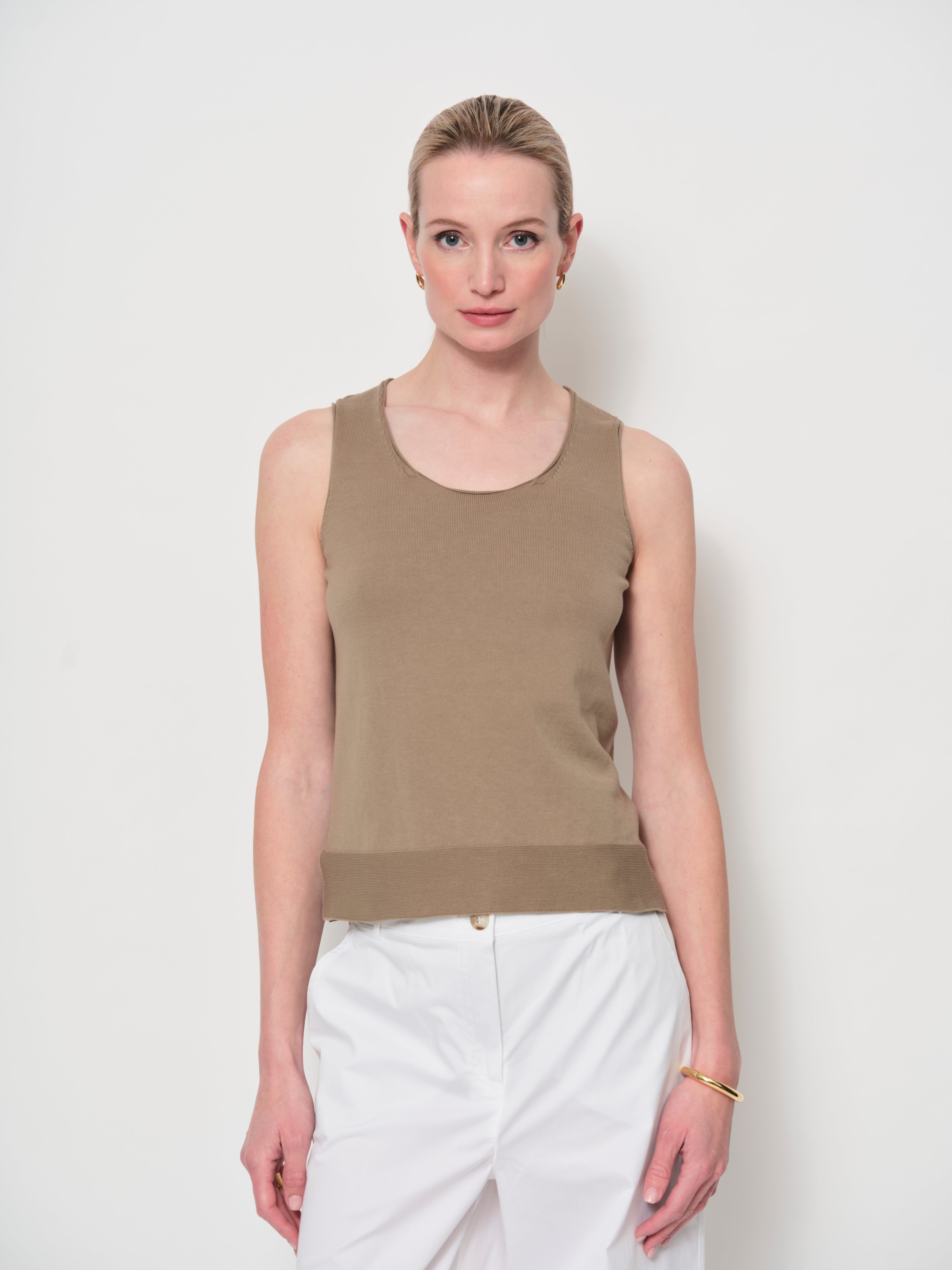 Relaxed, slightly loose-fit tank top crafted from soft, breathable cotton knit. Features a sleeveless design with a classic scoop neckline for effortless comfort and style. Its lightweight fabric makes it perfect for layering or wearing on its own, ideal for casual days or warm-weather styling.