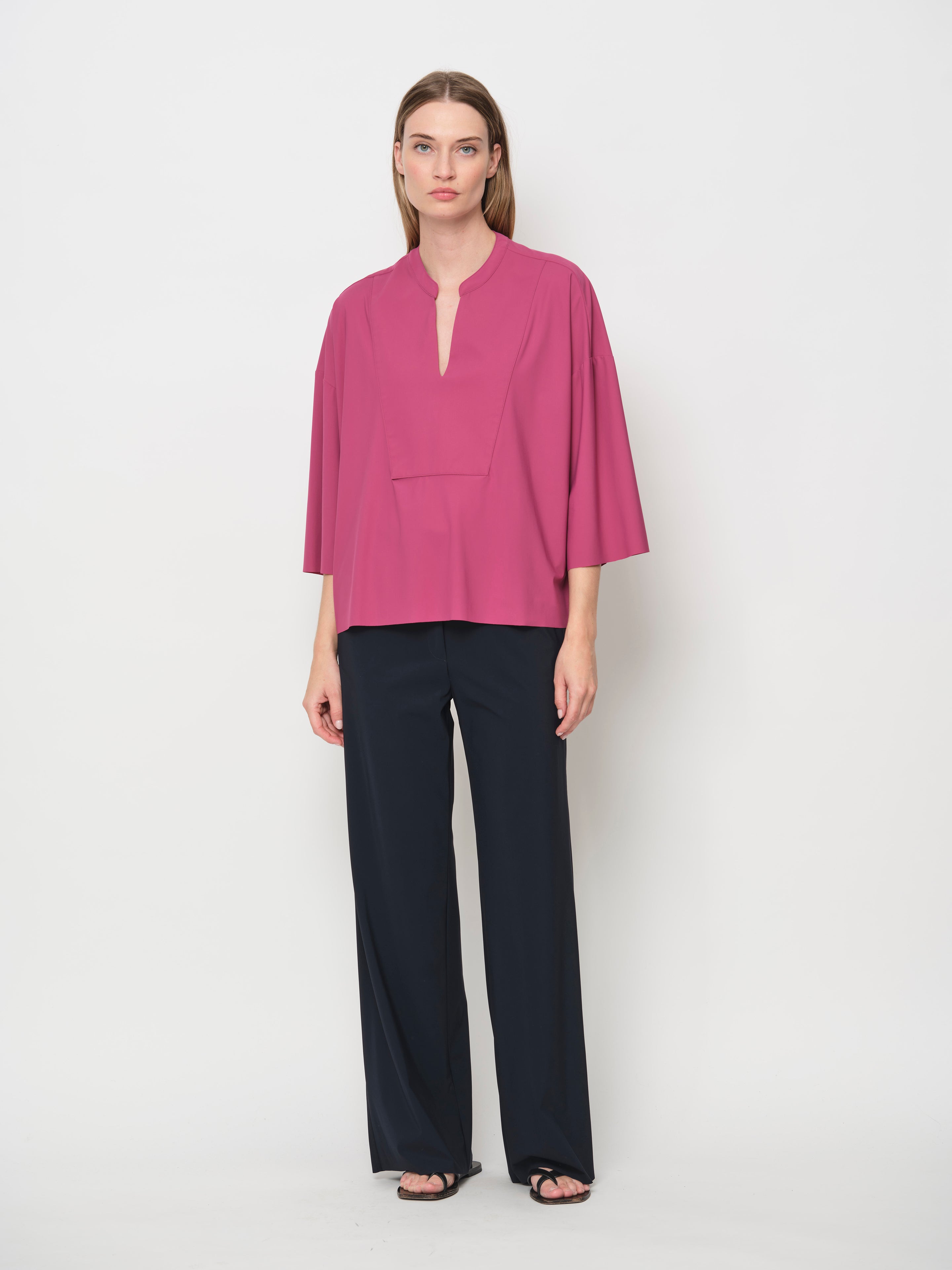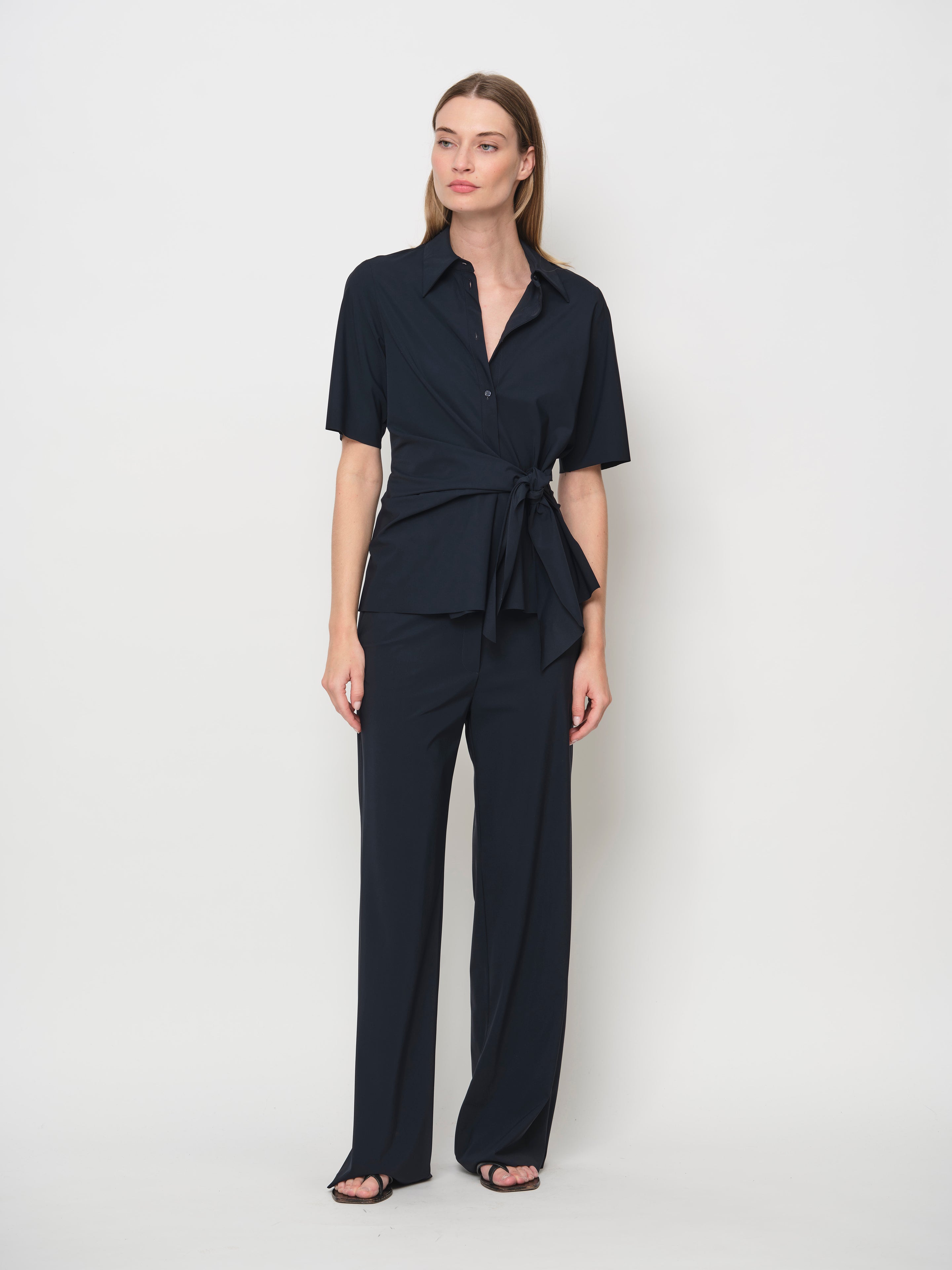 This wide leg trouser is a LaSalle icon from the essentials part of the collection. Made from a very comfortable Italian jersey fabric that is produced in a sustainable way. Fabric is washable, dries quickly and does not wrinkle. Trousers have an elasticated waist and side pockets.
