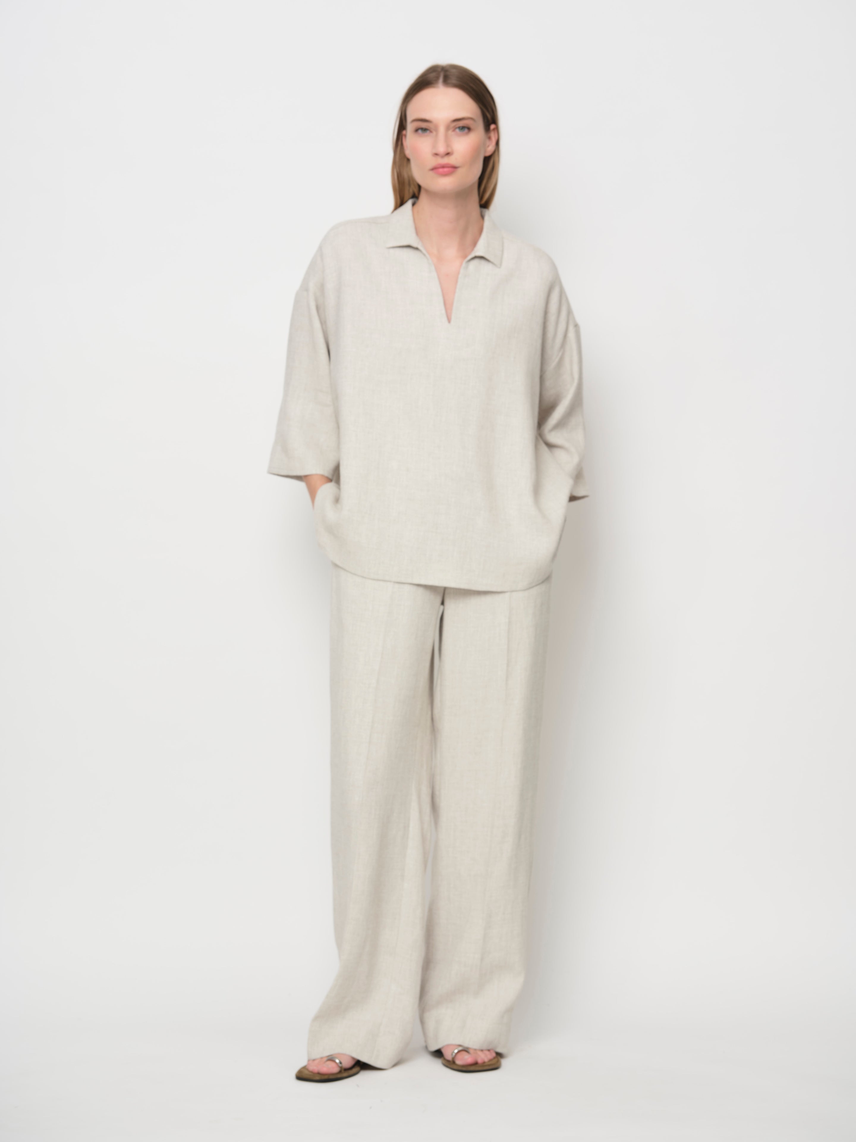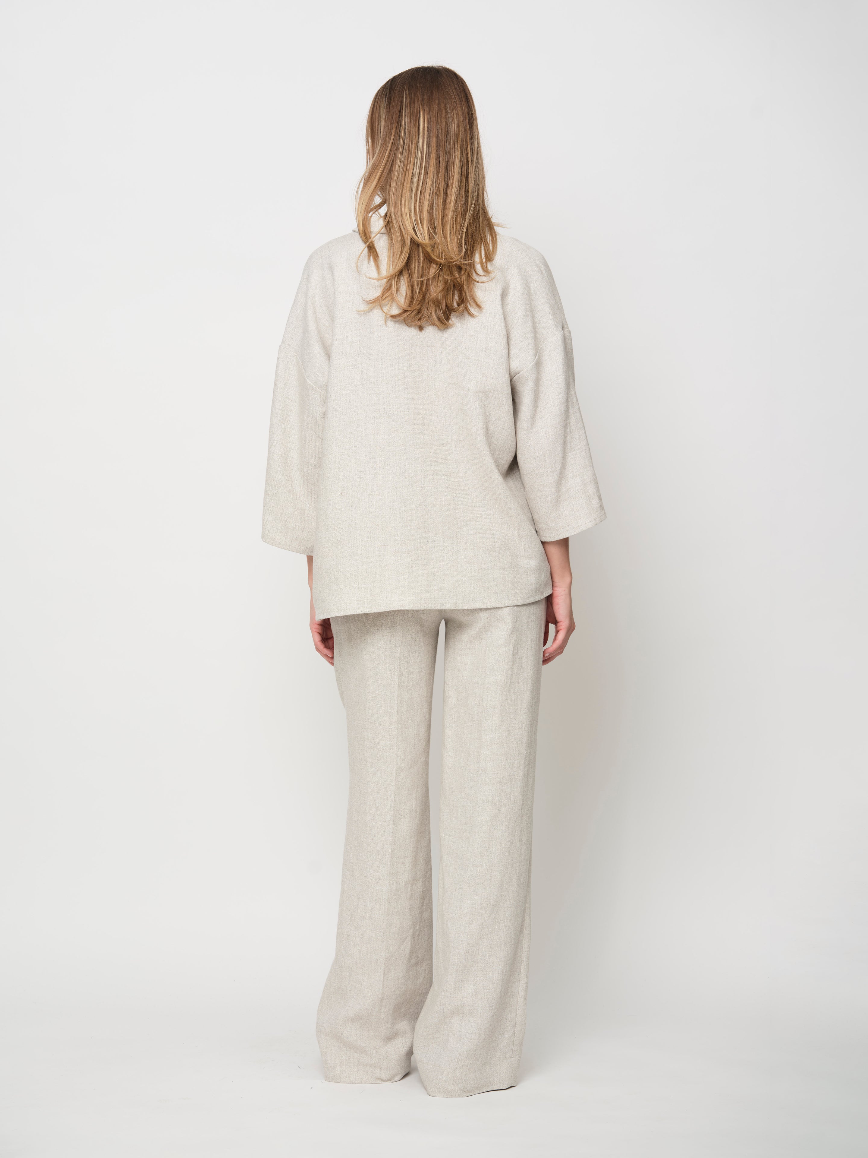 Introducing this season’s linen blend fabric, soft, breathable, and effortlessly stylish. These wide-leg trousers offer an elevated, relaxed silhouette.