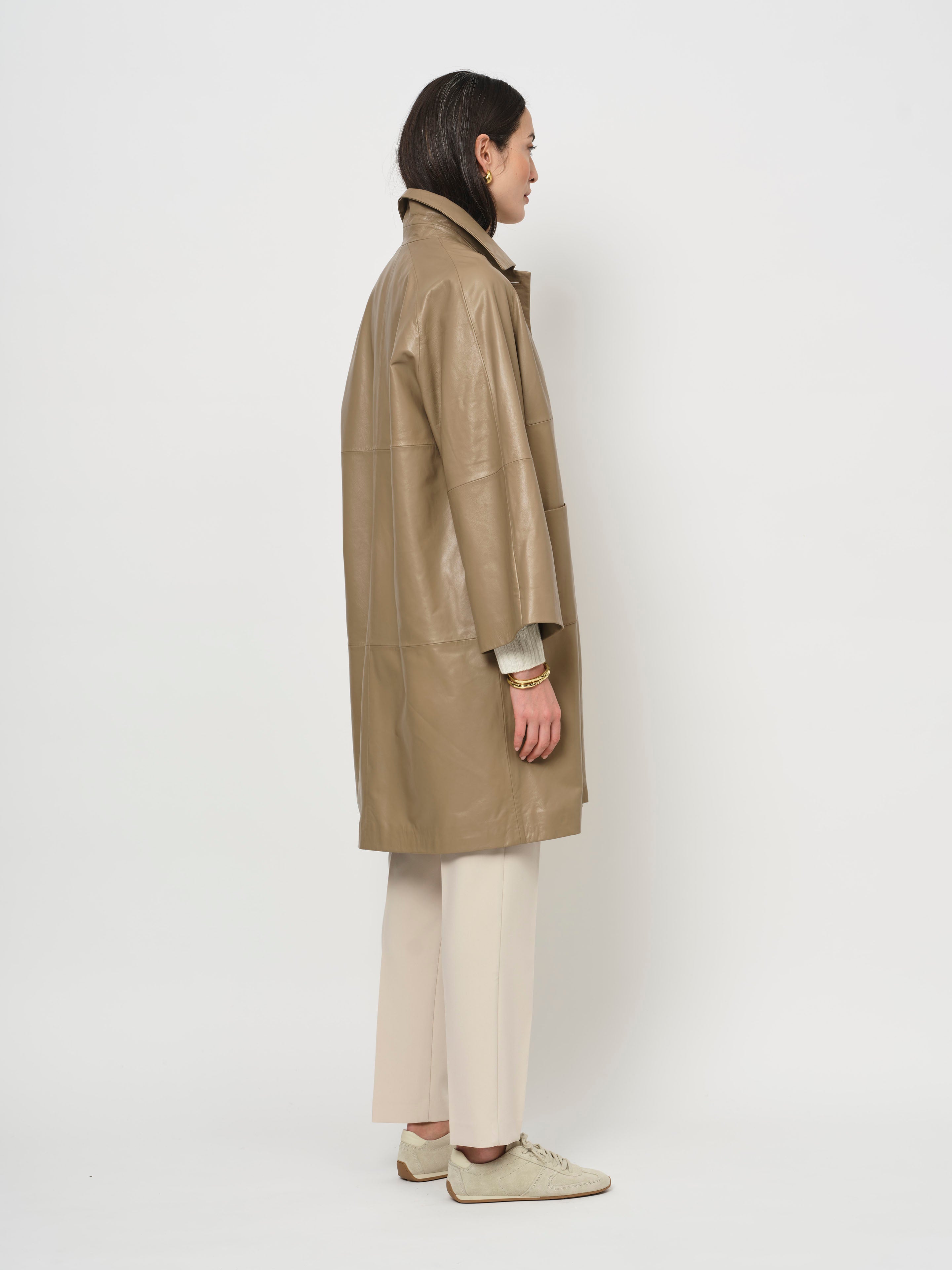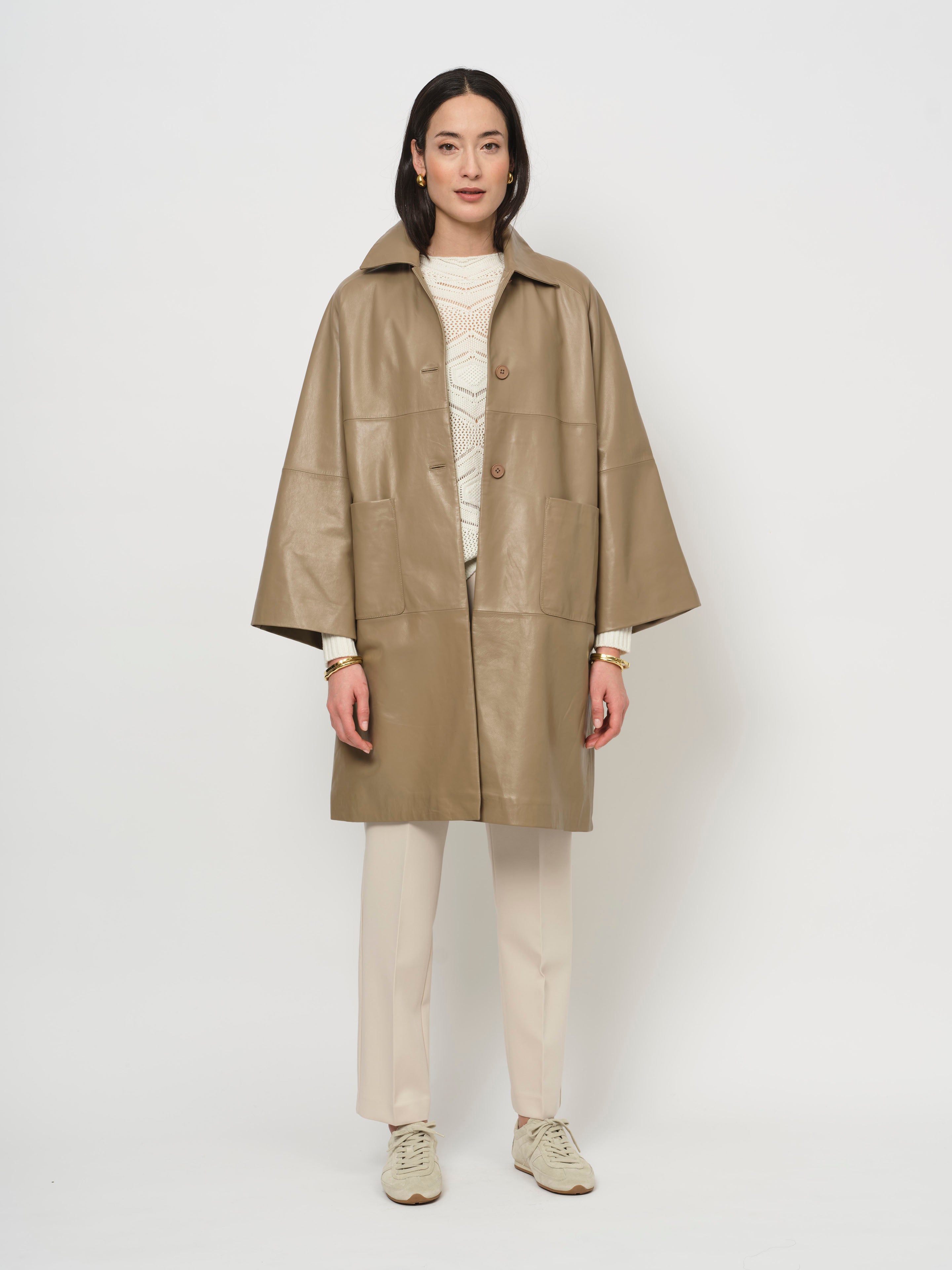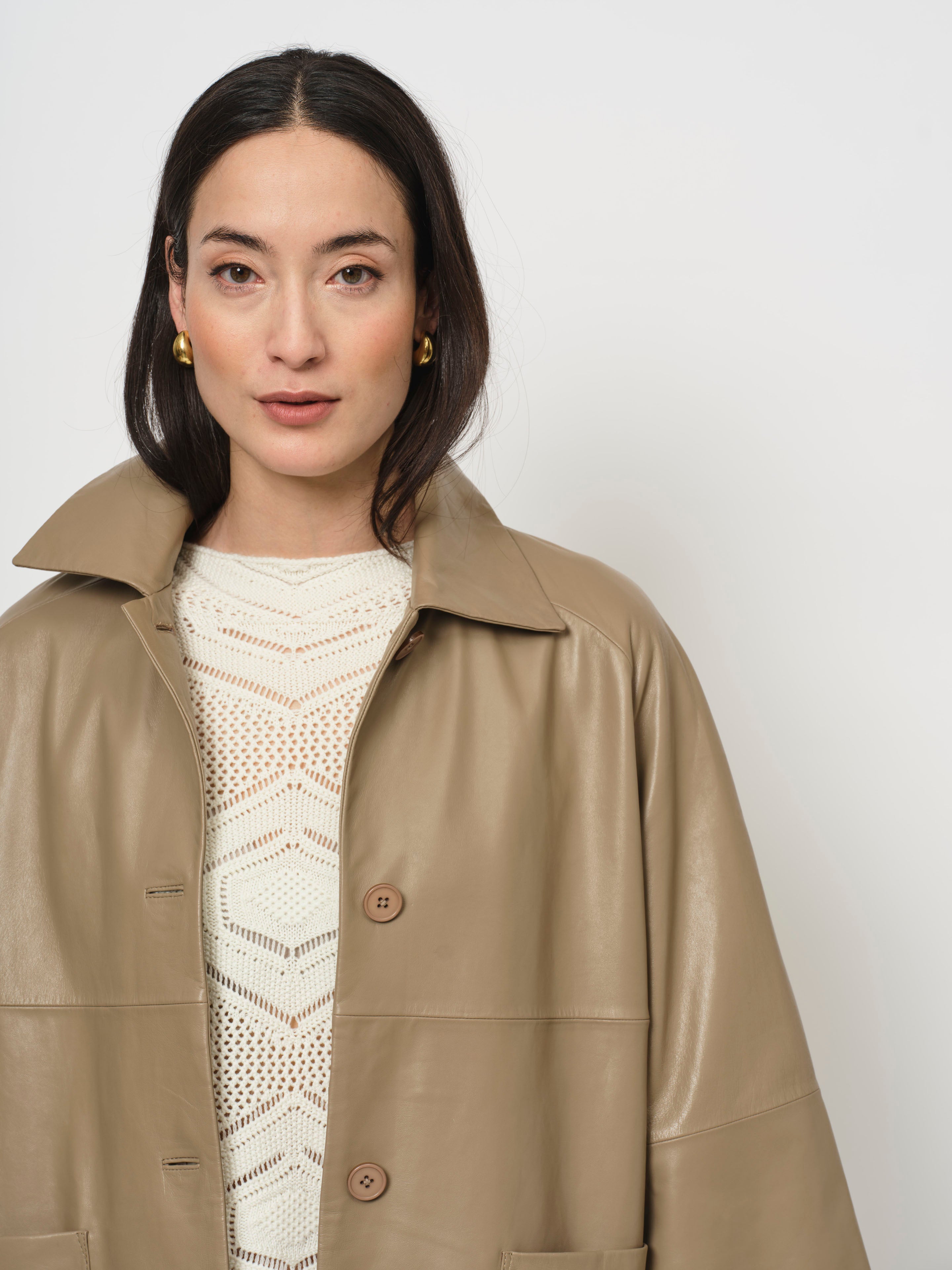 A luxurious leather coat with an oversized fit, this is the star piece of the season. Crafted from a soft and supple leather, this coat is timeless and will become more beautiful with age.
